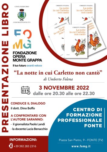 Umberto Folena parlerà del suo romanzo con il giornalista Paolo Landi e con la docente Lucia Benacchio; conduce il dialogo Dino Boffo.