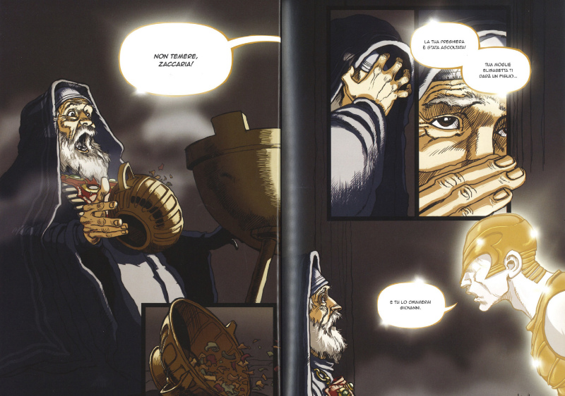 Una coppia senza figli di una piccola città. Una ragazza povera fidanzata con un carpentiere. Un gruppo di pastori che bivaccano sulle colline. Persone davvero ordinarie. Messaggeri fuori dall’ordinario sconvolgeranno le loro esistenze. Il racconto della nascita di Gesù secondo il Vangelo di Luca rivive in questo graphic novel dal disegno graffiante, incisivo e dinamico, dai colori fortemente contrastati, lontano dallo stile delle tradizionali Bibbie illustrate e vicino al gusto di adolescenti e giovani (dai 14 anni in su).