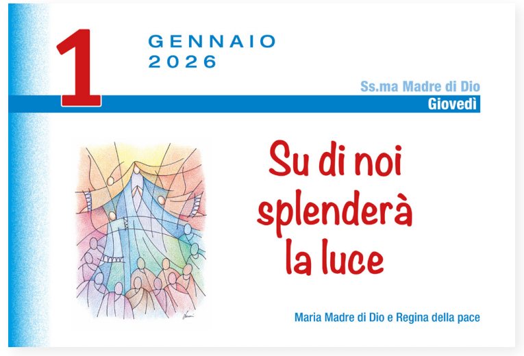 Calendario giornaliero per il 2026 a colori con pagine staccabili. Sul retro di ogni pagina si trovano brevi meditazioni ispirate alle letture del giorno.