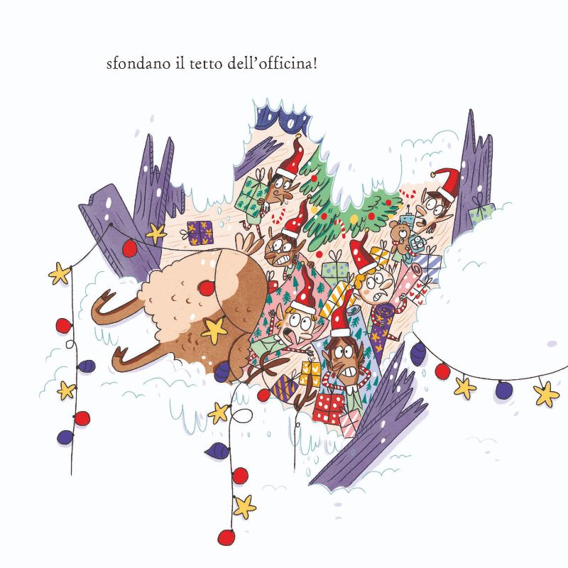 Gli elfi sono indaffarati con gli ultimi preparativi e Babbo Natale pensa che questa volta non ci sarà nessun imprevisto quando… la renna Rudolph si schianta sul tetto dell’officina per colpa di un’acrobazia in volo!!!