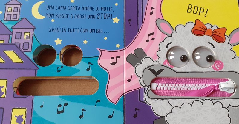 In questo nuovo libro interattivo della collana ÀncoraWow, gli occhi del lama si muovono e la sua bocca si apre e si chiude grazie a una cerniera, un’esperienza che catturerà sicuramente l’attenzione dei più piccoli. Il testo che accompagna le illustrazioni è tutto in rima e in STAMPATELLO MAIUSCOLO. Riuscirà Lama a diventare una POP STAR?
