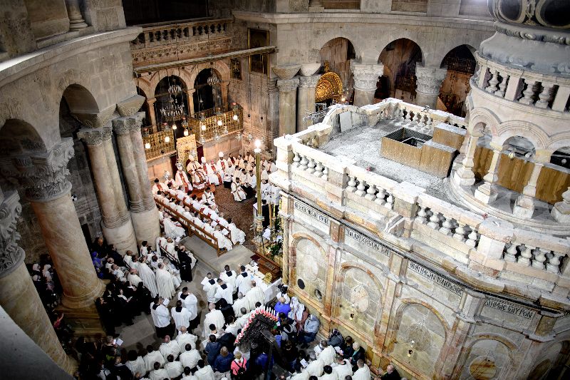 I giorni terribili che abbiamo vissuto e stiamo ancora vivendo ci hanno chiuso, sembrano aver azzerato le nostre attese, chiuso ogni strada, cancellato il futuro. … Sembrano falliti, oggi, i nostri propositi di pace e di riconciliazione, di dialogo. … Ma se solo alzassimo lo sguardo, se smettessimo di rimanere ripiegati su noi stessi, nel nostro dolore, coi cuori sbarrati da macigni che ci tengono chiusi nei nostri sepolcri, forse anche noi, come le donne del Vangelo di Pasqua, potremmo vedere qualcosa di nuovo, qualcosa che si compie.