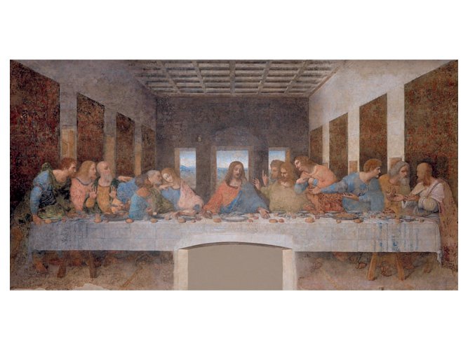 L'immagine dell'Ultima Cena ha una cornice bianca. Vengono riportati in cornice i nomi degli apostoli.